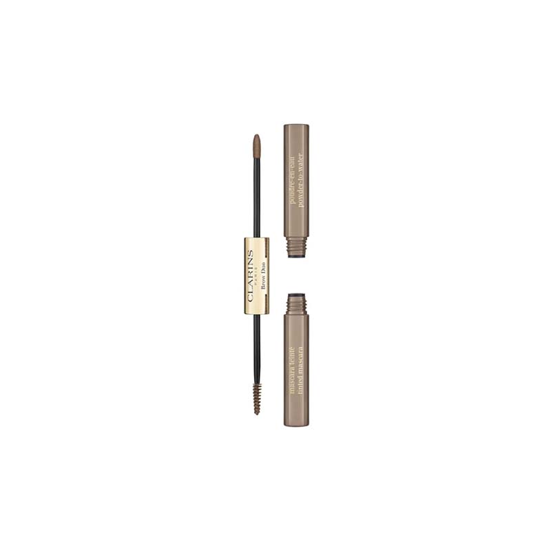 This 2-in-1 product sculpts and sets brows. First, the water-powder defines and visibly thickens brows. Its powdery texture transforms into a creamy, water-light finish. Then, the long-lasting mascara sets and intensifies the shade for perfectly defined brows.