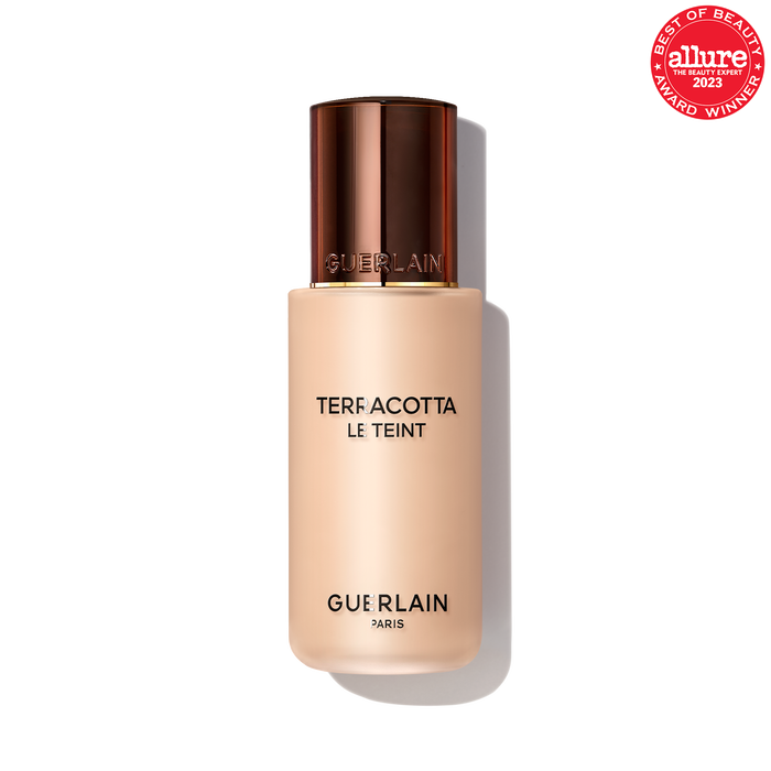 With Terracotta Le Teint, a foundation in liquid form consisting of 95% ingredients of natural origin¹, Guerlain defines the contours of a new generation of foundations: Just as lightweight and radiant as a glow powder, just as complexion-perfecting as a foundation. The color result lasts for up to 24 hours² without smudging and leaves your complexion radiant with a beautiful, healthy glow — as if you have just returned from a weekend in the sun.