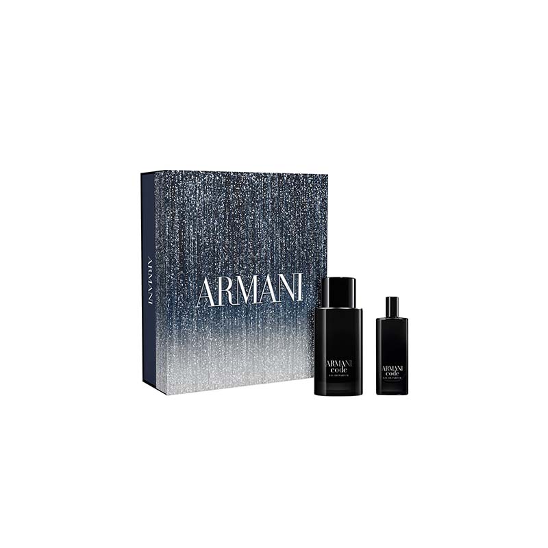 ARMANI Giftset dresses in sparkles, unveiling a dazzling blue and silver gradient. Open your Holiday giftset and fall for ARMANI’s inimitable icons. The Armani Code Eau de Parfum Set includes a 75ml fragrance and a 15ml fragrance, offering a sensual oriental woody aroma that conjures the mood of intense, yet effortless, seduction, intensified by Armani Code’s signature Tonka bean.